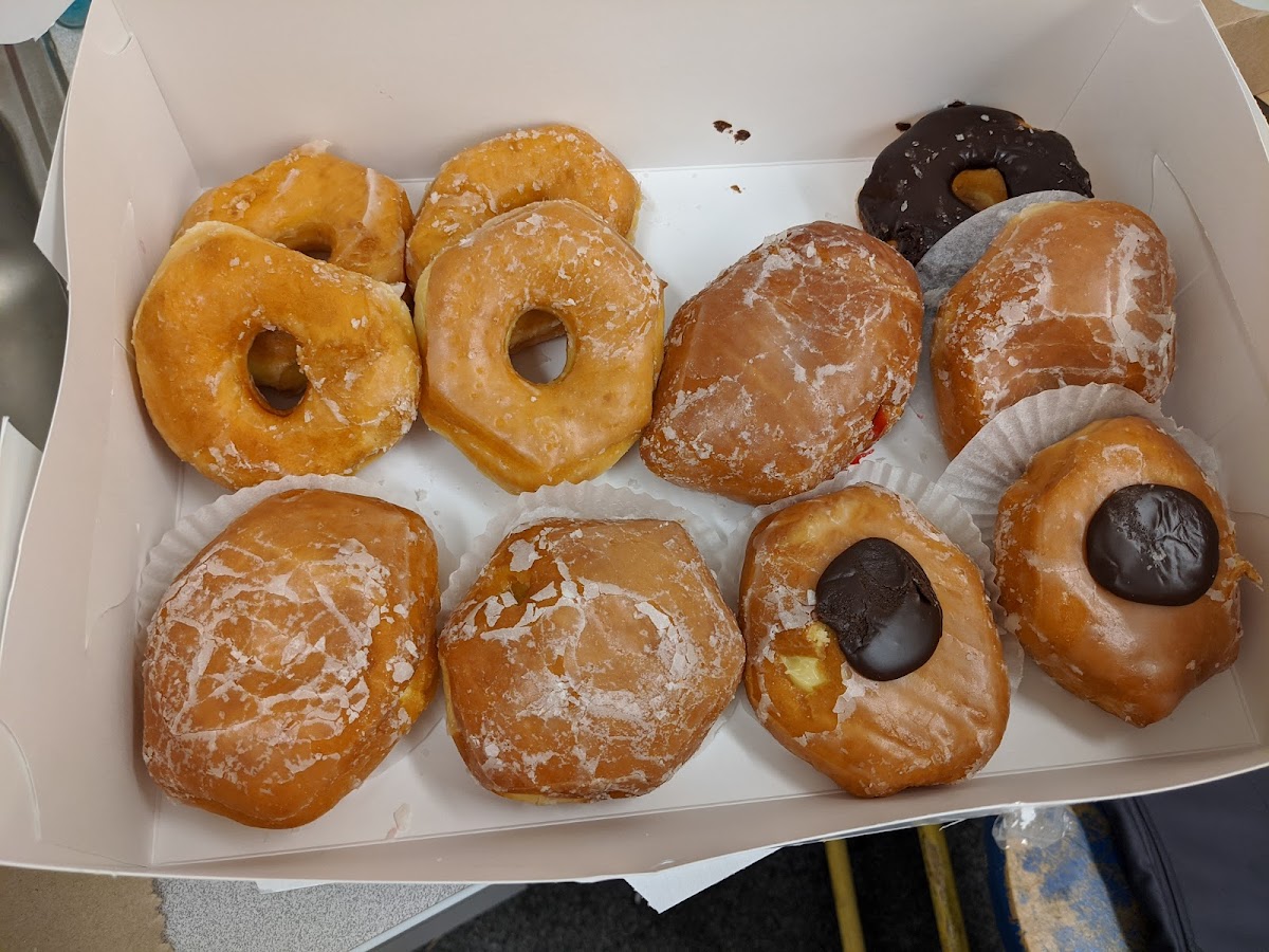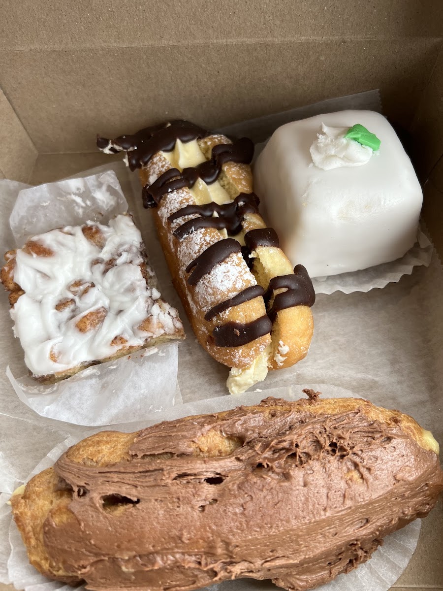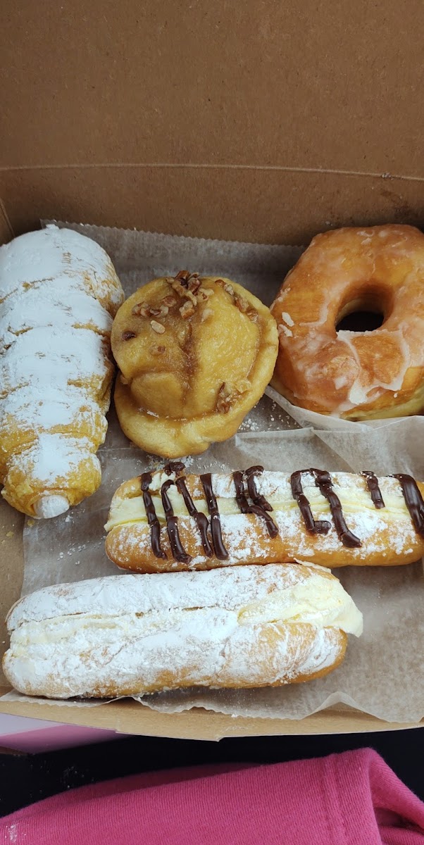 We got way too much sugar here but it all looks so good. We started with the chocolate hot dog, then got the chocolate coconut cake, followed by the vanilla fondant, with a chocolate cherry cake, a honey bun and a sticky bun. The hot dog is very good, not sure I agree with the name but anyways. The hot dog is light and fluffy with a light cream in the middle, great mouth feel without having the sugar buzz. The fondant would have been my favorite but it has too much icing (it was too sweet), but the cake is light and airy with just the right amount of sweetness. The honey bun and sticky bun were exactly those nothing that really makes them stand out but good none the less. The cherry was a nice combination of flavors but the make up of it with the rest of the items made it not seem as good. Lastly the coconut had what I was told was boiled frosting, which is supposed to have the texture of marshmallow cream without the marshmallow taste, and it did have that, but overall it had too much going on with it.